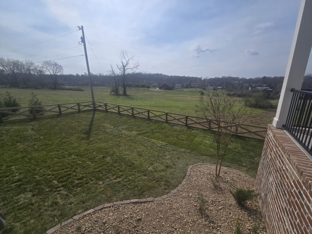 This project started with a sloped, bare yard that had poor grass coverage and uneven terrain. Like many properties in Middle Tennessee, the soil was compacted and not ideal for healthy lawn growth.